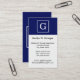 Navy Blue White Framed Initial Monogram Business Card