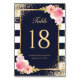 Navy Blue White Gold Blush Pink Floral Table Number