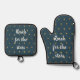 Navy Blue White Gold Stars Oven Mitt & Pot Holder Set