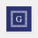 Navy Blue White Greek Key #1 Framed Monogram Napkin