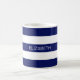 Navy Blue White Horiz Preppy Stripe #3 Monogram Coffee Mug