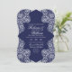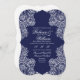 Navy Blue White Lace Elegant Vintage Wedding Invitation