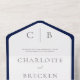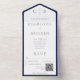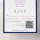 Navy Blue & White Minimal Monogram QR Code All In One Invitation