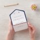 AVAILABLE WITH OR WITHOUT A QR CODE TO SCAN IN THE RSVP AREA. This simple yet elegant design has a modern look, with a two-toned navy blue and white background. Add a QR code to your invitation so that gusts can quickly access your wedding Website for details, directions, menu options, and more, or add your gift registry Web URL. Personalised All-In-One invitations are a unique combination of both a beautifully printed custom invitation with an easy to tear off perforated RSVP postcard. And they are so easy to use! You simply fold, then seal the back flap with the three included clear stickers, and mail. And when your guests receive your custom invite, they just tear the perforated RSVP Card off and drop it back in the mail to you! Created by Simply Farmhouse Press.
