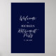 Welcome your guests to a special celebration day with this stylish navy blue & white welcome sign. This poster features modern typography "Welcome to Retirement Party" with a simple layout. You can customise the name and the date. Matching invitations and party supplies are available at my shop BaraBomDesign.