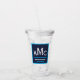 Perfectly preppy and customisable monogram acrylic tumbler in navy and white with bright blue details