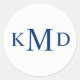 NAVY BLUE White Monogram Bride Groom Wedding Classic Round Sticker