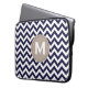Navy Blue White Monogram Chevron Pattern Laptop Sleeve