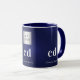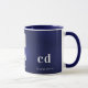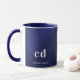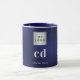 A navy blue background. The blue colour is uneven. Personalise and add your business logo, a name and monogram initials (x3). The name is written in white with modern block letters.
