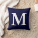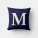 Navy Blue White Monogrammed M Throw Pillow