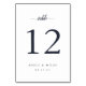 Simple and chic table number cards in classic black and white make an elegant statement at your wedding reception. Personalise with each table number, your names, and wedding date in rich navy blue lettering with calligraphy script accents. Design repeats on reverse side. Coordinates with our Ampersand Monogram wedding invitation suite.