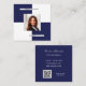 A classic navy blue and white colour block background. Personalise and add your profile photo and text on the front.
