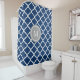 Navy Blue White Quatrefoil Monogram Shower Curtain