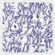 A bevy of bunny rabbits, hand drawn in dark navy blue on crisp white, form a large pattern on this sticker, available in multiple fun shapes.. Fun for any recipient, for any occasion, and especially great for anyone who loves animals, nature and rabbits! Whimsical, original artwork & design by Tuzi Williams.