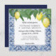 Navy Blue White Shibori X Pattern w Lemon Branch Invitation