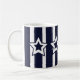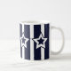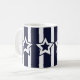 Navy Blue White Star Stripes Pattern Coffee Mug designed by Nisha Prabhu. The Navy Blue White Star Stripes Pattern Coffee Mug is a stylish and coastal addition to your morning routine. This coffee mug features a navy blue white star stripes, creating a bold and eye-catching design. Whether you're enjoying your morning coffee, tea, or hot chocolate, this mug adds a touch of elegance to your drinkware collection. It also makes a great gift for friends, family, or coworkers who appreciate a touch of coastal in their daily routine. Start your day off right with the Navy Blue White Star Stripes Pattern Coffee Mug.