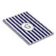 Navy Blue White Stripe Round Wht Monogram Label Notebook