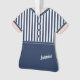 Blue and white striped shirt, and matching blue skirt, trimmed in grey... showcases your loved one's name. On the back is a small heart "tattoo" in white, with the wording, "Christmas 20xx" in red.