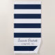 Navy blue white stripes name script beach towel