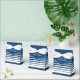 Personalised wedding favour box. Navy blue and white stripes. Custom thank you message from bride and groom. Cute polkadot print with elegant white ribbon bow. Customisable background colour. Nautical maitime theme design.