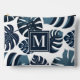 Navy Blue & White Tropical Monstera Leaf Accessory Pouch