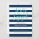 Stylish Engagement Party invitation featuring the words "We're Engaged" in trendy turquoise brush script against a blue and white stripes background. Card has a turquoise colour back side. Check out other matching items here https://www.zazzle.com/collections/119250194970828530?rf=238364477188679314