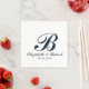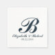 Custom personalised monogram paper napkins for weddings and related events. Personalise this elegant wedding accessory with the bride and groom names, wedding date, initial or anything you like. Simple, elegant Navy Blue script text on white background.
