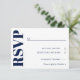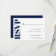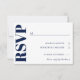 Elegant typography wedding RSVP card in shades of navy blue and white.