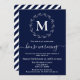 Navy Blue White Wreath Monogram House Warming Announcement