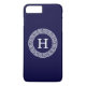 Navy Blue Wht Greek Key Rnd Frame Initial Monogram Case-Mate iPhone Case