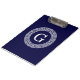 Navy Blue Wht Greek Key Rnd Frame Initial Monogram Clipboard