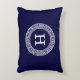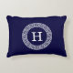 Navy Blue Wht Greek Key Rnd Frame Initial Monogram Decorative Cushion
