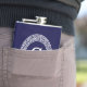 Navy Blue Wht Greek Key Rnd Frame Initial Monogram Hip Flask