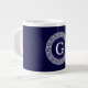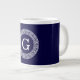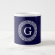 Navy Blue Wht Greek Key Rnd Frame Initial Monogram Large Coffee Mug