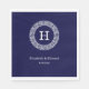 Navy Blue Wht Greek Key Rnd Frame Initial Monogram Napkin