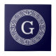 Navy Blue Wht Greek Key Rnd Frame Initial Monogram Tile