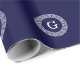Navy Blue Wht Greek Key Rnd Frame Initial Monogram Wrapping Paper