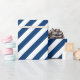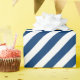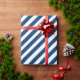 A navy blue and white wide stripe holiday wrapping paper featuring navy blue wide stripes on the diagonal.