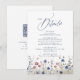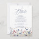Watercolor floral wildflower field with modern script in navy blue and burgundy red, elegant and sophisticated, great details cards with QR code for rustic fall wedding, classic garden wedding, and boho winter wedding.