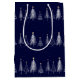 Navy Blue Winter Christmas Pine Trees Star Medium Gift Bag