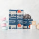 Navy Blue Winter Landscape Forest Moon Drawing Wrapping Paper. Calm winter snow landscape with forest. Happy holidays in a trendy script. Personalized the text or erase it.