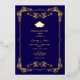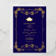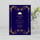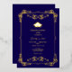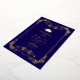 A luxurious navy blue design featuring an intricate gold ornate frame elegantly surrounding a refined graduation-themed layout. The metallic gold accents highlight the sophisticated details, creating a timeless, customisable piece. The background colour can be changed to suit any style, while the gold foil effect can be adapted to silver or rose gold for a personalised touch.