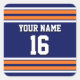 Navy Blue with Orange White Stripes Team Jersey Square Sticker