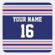 Navy Blue with Pink White Stripes Team Jersey Square Sticker