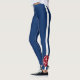 These solid Navy Blue leggings feature a white stripe and nautical red and white anchor design on each leg.