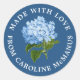 Navy Blue with White Hydrangea Made with Love Classic Round Sticker