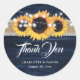 Navy Blue Wood Burlap Lace Sunflower Wedding Classic Round Sticker