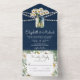 Navy Blue Wood Daisies Floral Mason Jar Wedding All In One Invitation