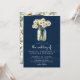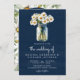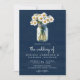 Navy Blue Wood Daisies Mason Jar QR Code Wedding Invitation