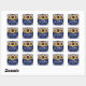 Elegant navy blue and sunflower wedding favor stickers/envelope seals featuring sunflowers on a rustic wood background adorned with white floral lace and string lights.